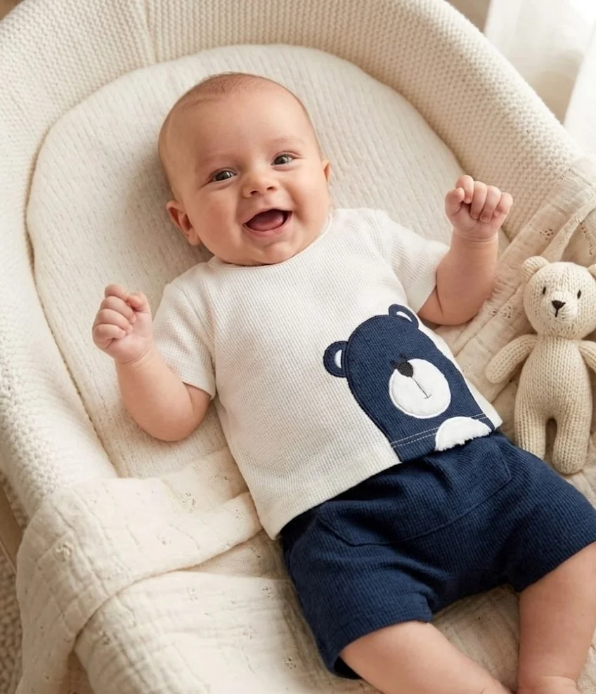 Sevimli ve yumuşak kumaştan üretilen bu takım, bebeğinizin konforu için tasarlandı. Şirin ayı baskısı ve rahat kesimi ile her anına neşe katacak.