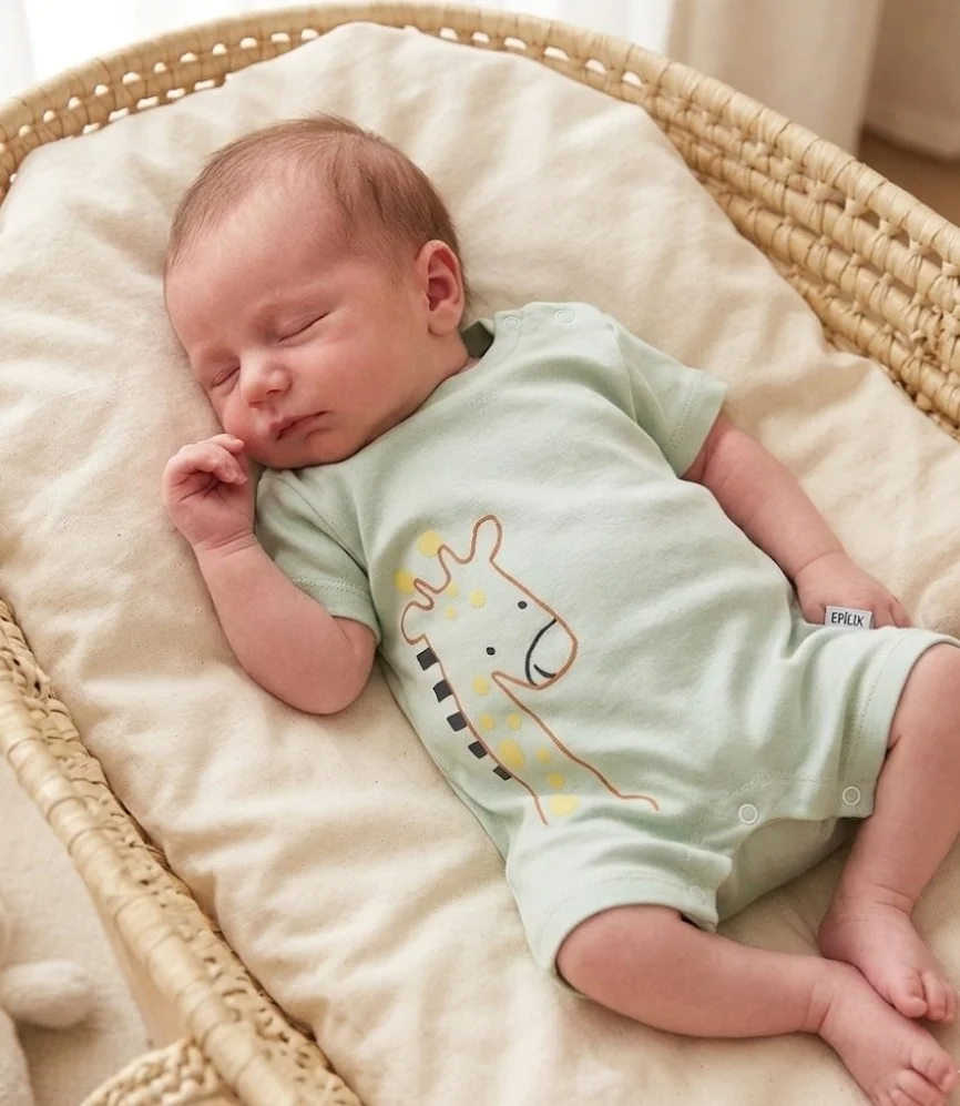 %100 pamuk, yumuşacık ve nefes alır yapı. Sevimli deseni ve çıtçıtlı tasarımıyla rahat kullanım sağlar.