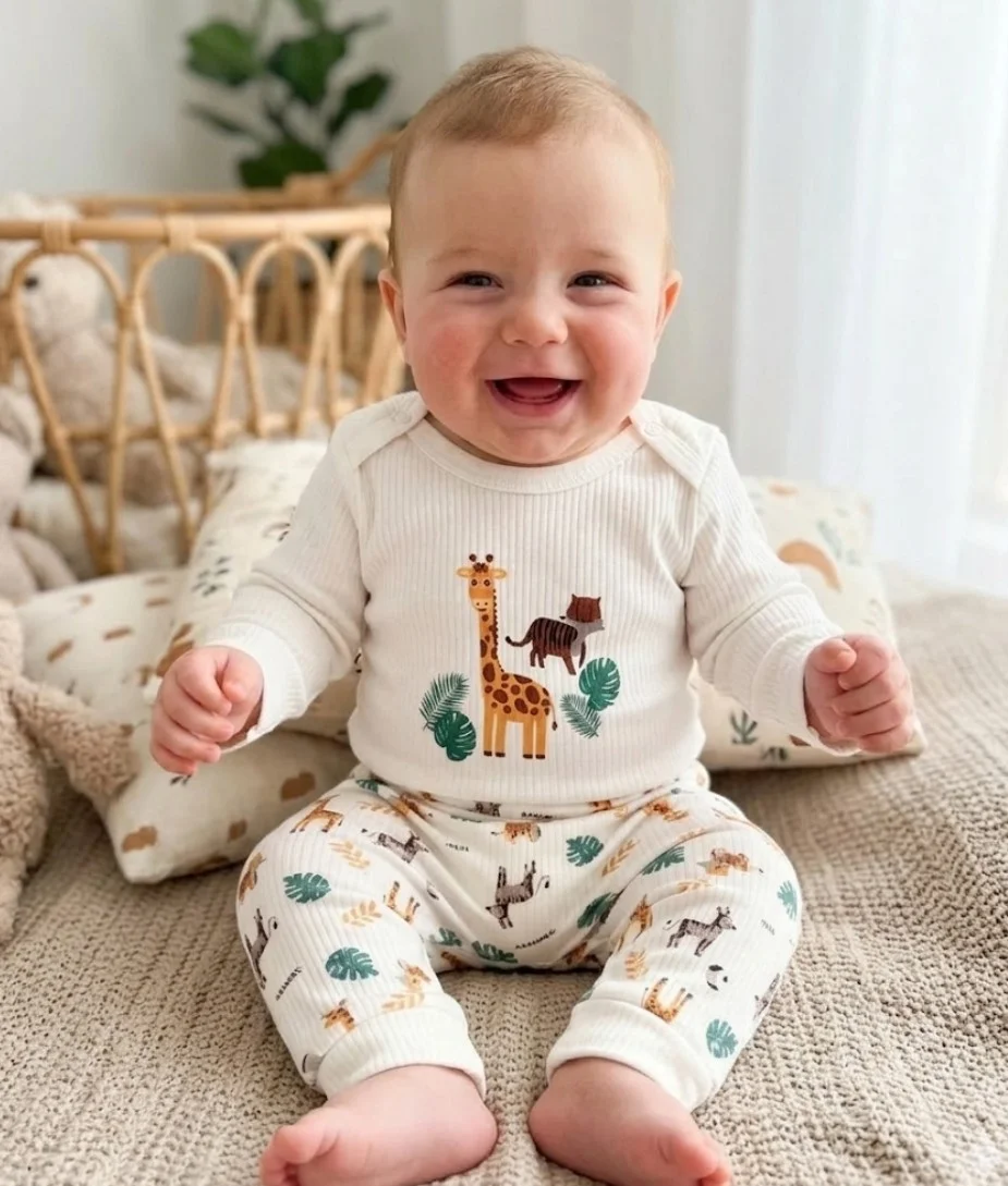 %100 pamuklu Esnek dokusu sayesinde bebeğinizin hareketlerini kısıtlamaz, defalarca yıkamada formunu korur.