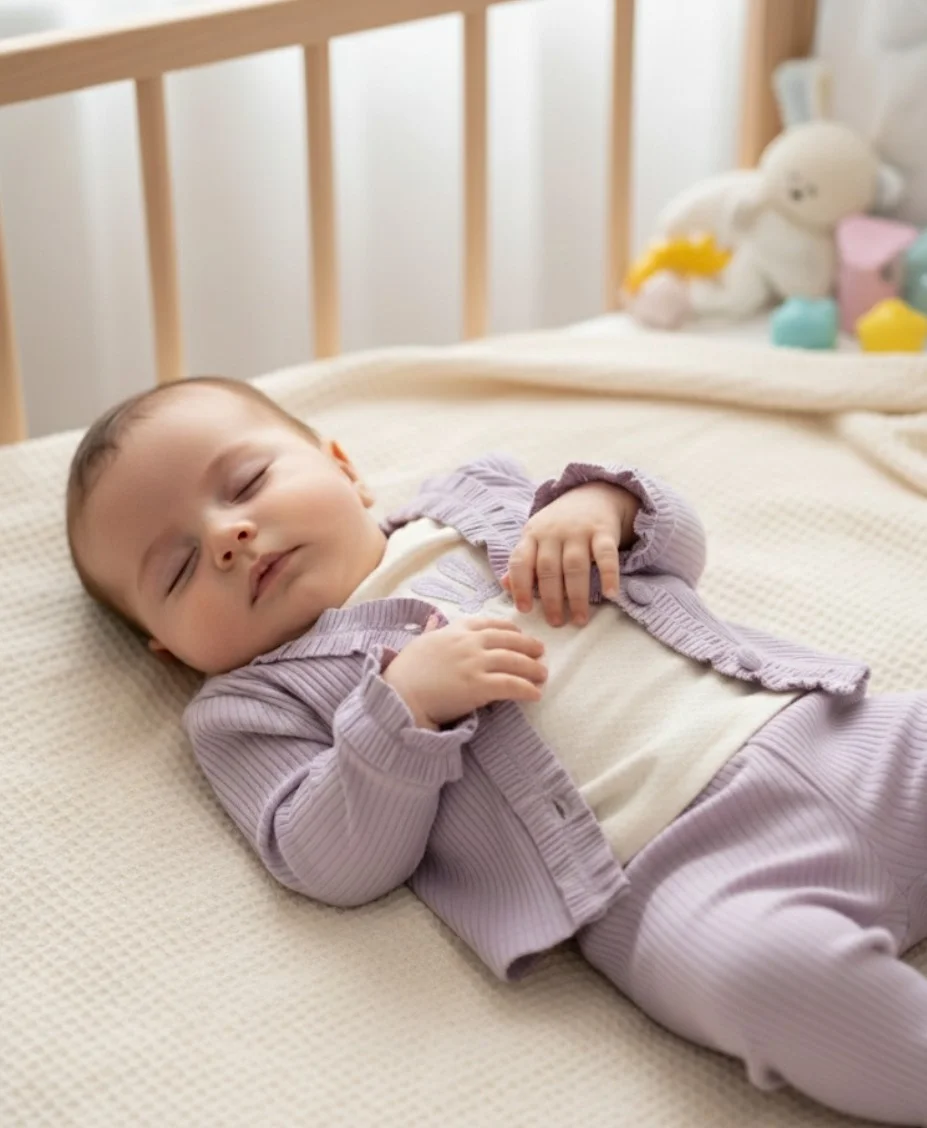 Yumuşacık fitilli kumaşıyla öne çıkan bu set; fırfır detaylı hırka, baskılı tişört ve rahat kesim tayttan oluşur. Esnek yapısı ve doğal dokusuyla bebeğinizin gün boyu konforlu hissetmesini sağlar.