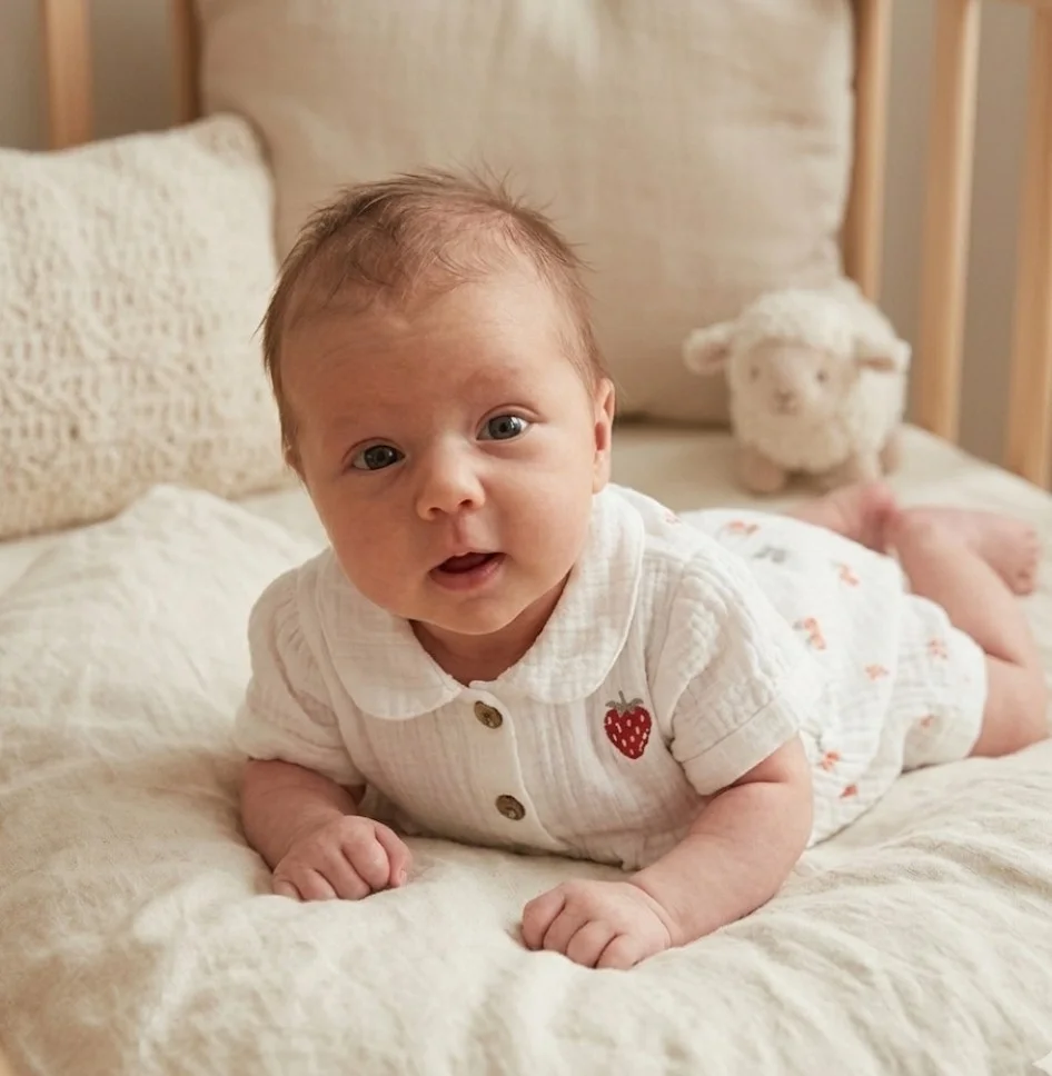 Bebeğinizin cildi için en iyisi! %100 pamuklu müslin kumaşıyla terletmez, nefes alır ve gün boyu yumuşacık bir konfor sunar.