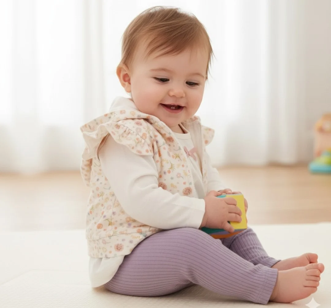 Kız Bebek Küçük Çiçekli Yelekli Mor Takım