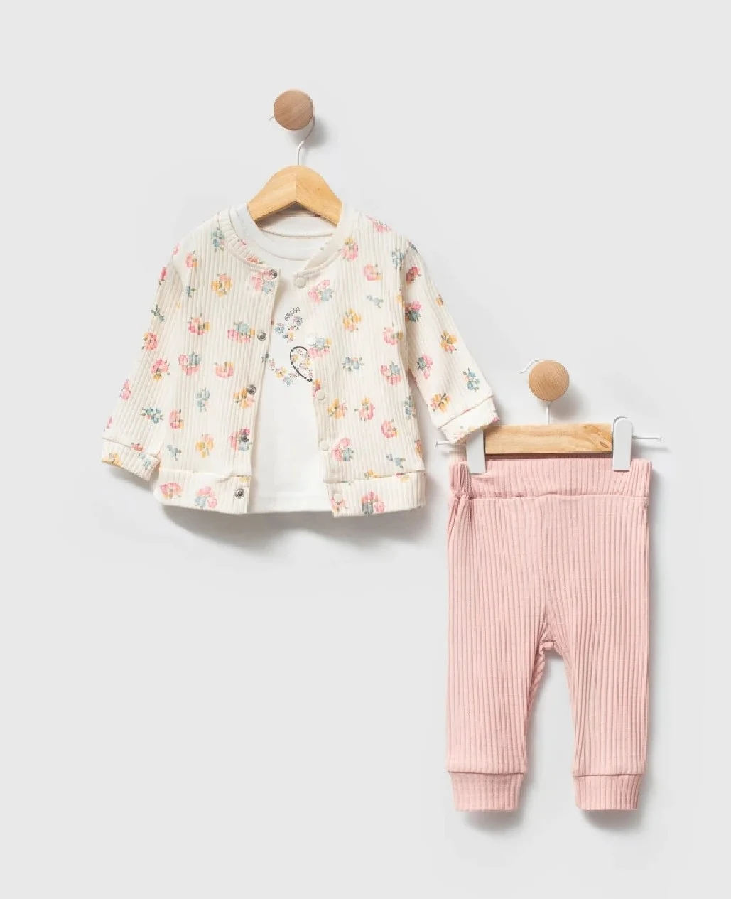 Kız Bebek Pembesi Hırka 3'lü Takım