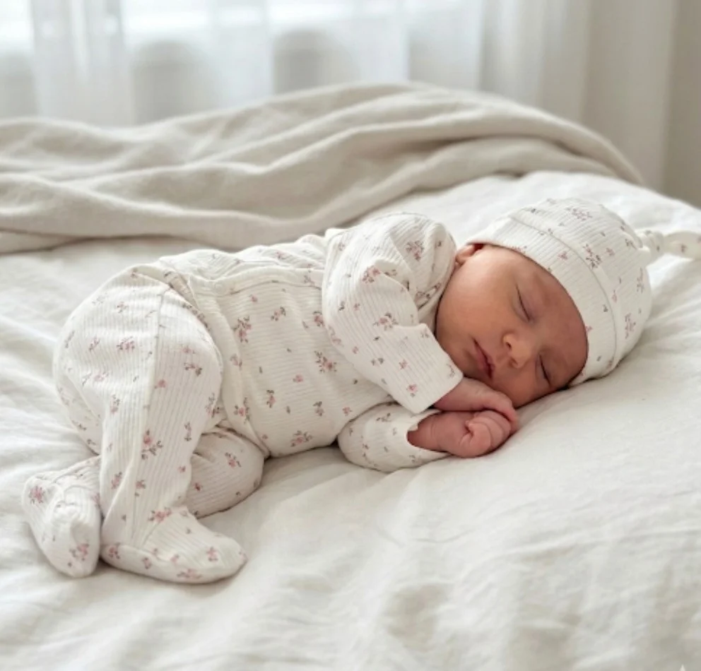 Çiçek Desenli Beyaz Yenidoğan Takım