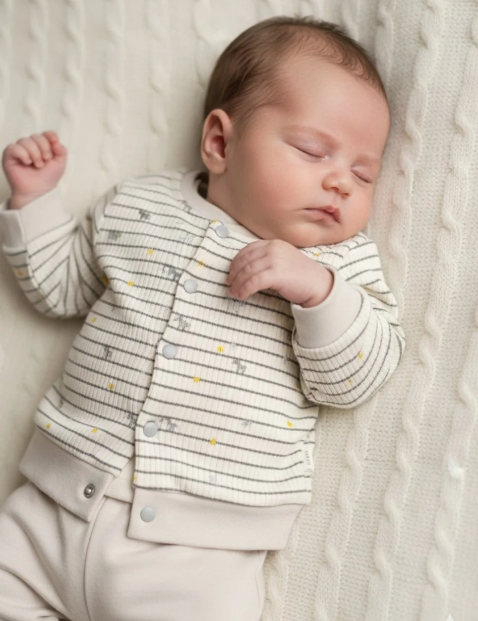 Krem Kiremit Çizligi 2'li Organik Pamuklu Tulum