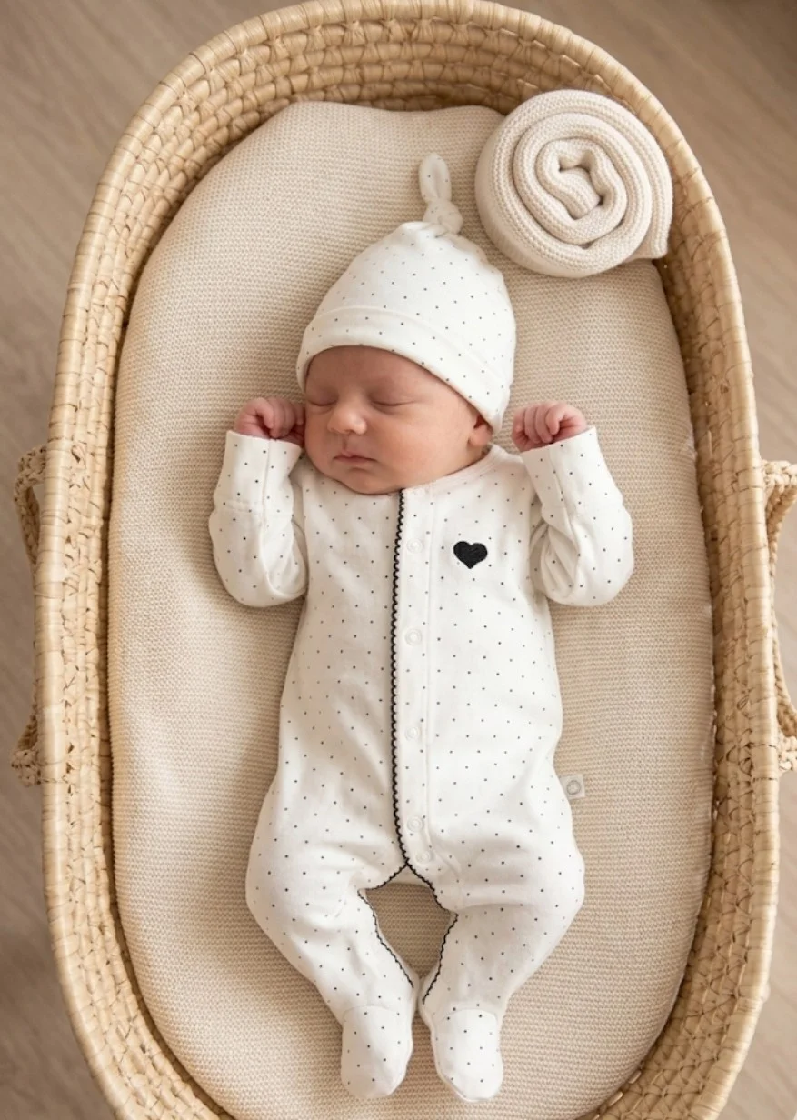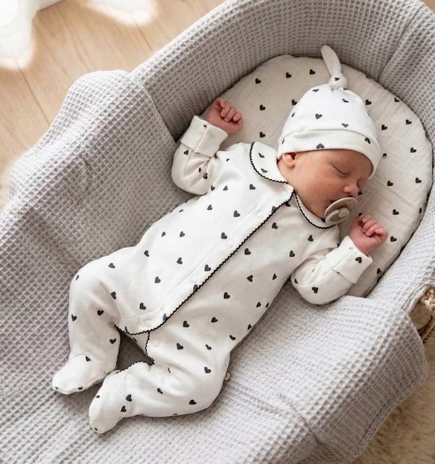 Organik pamuktan üretilmiş kız bebek ikili tulum ve şapka seti, hassas ciltler için yumuşak ve nefes alabilir yapıdadır. Gün boyu rahatlık sağlar, doğal ve sağlıklı bir kullanım sunar.