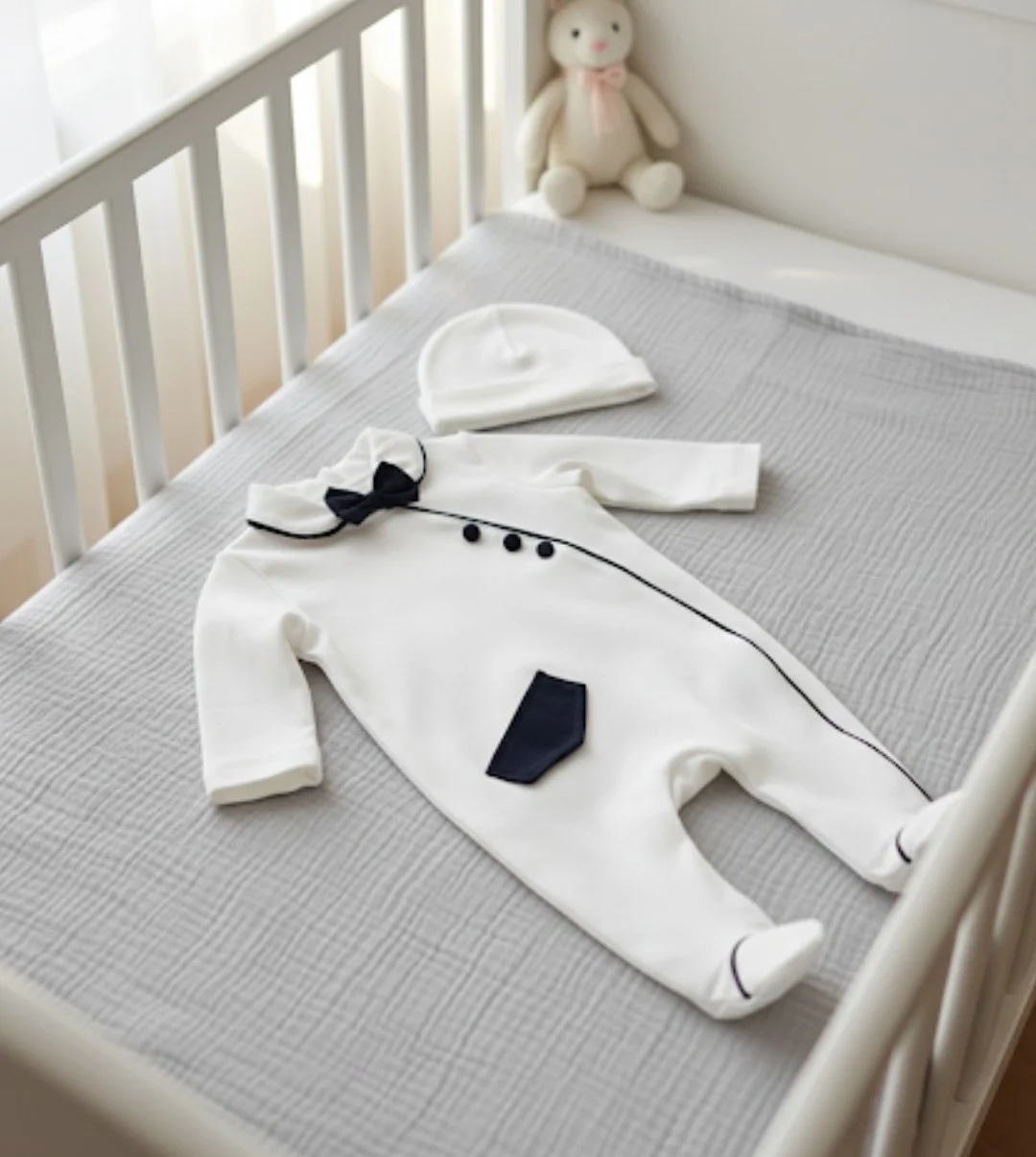 Papyonlu Bebek Tulum Şapka