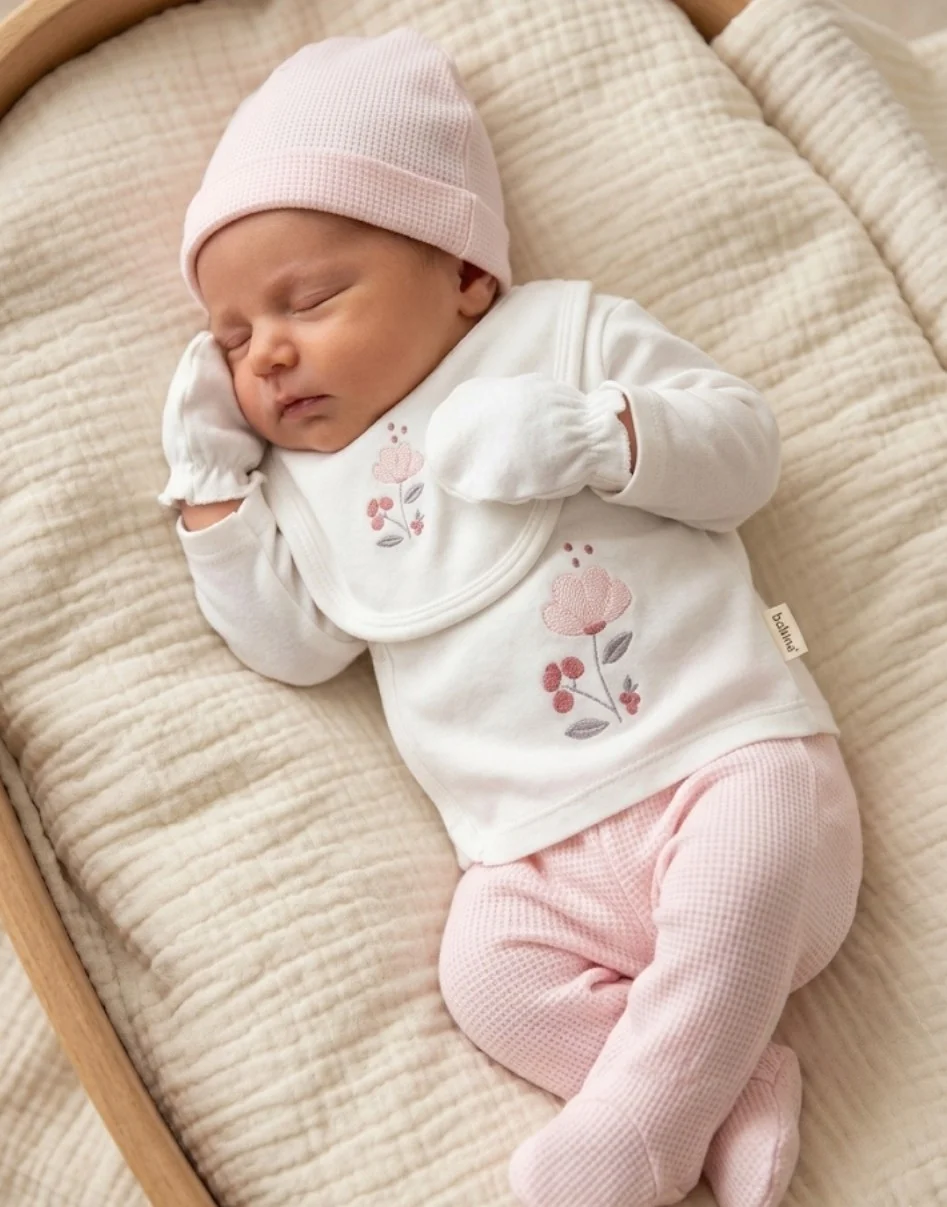 Bebeğinizin cildine uygun, pamuklu 5'li takım.